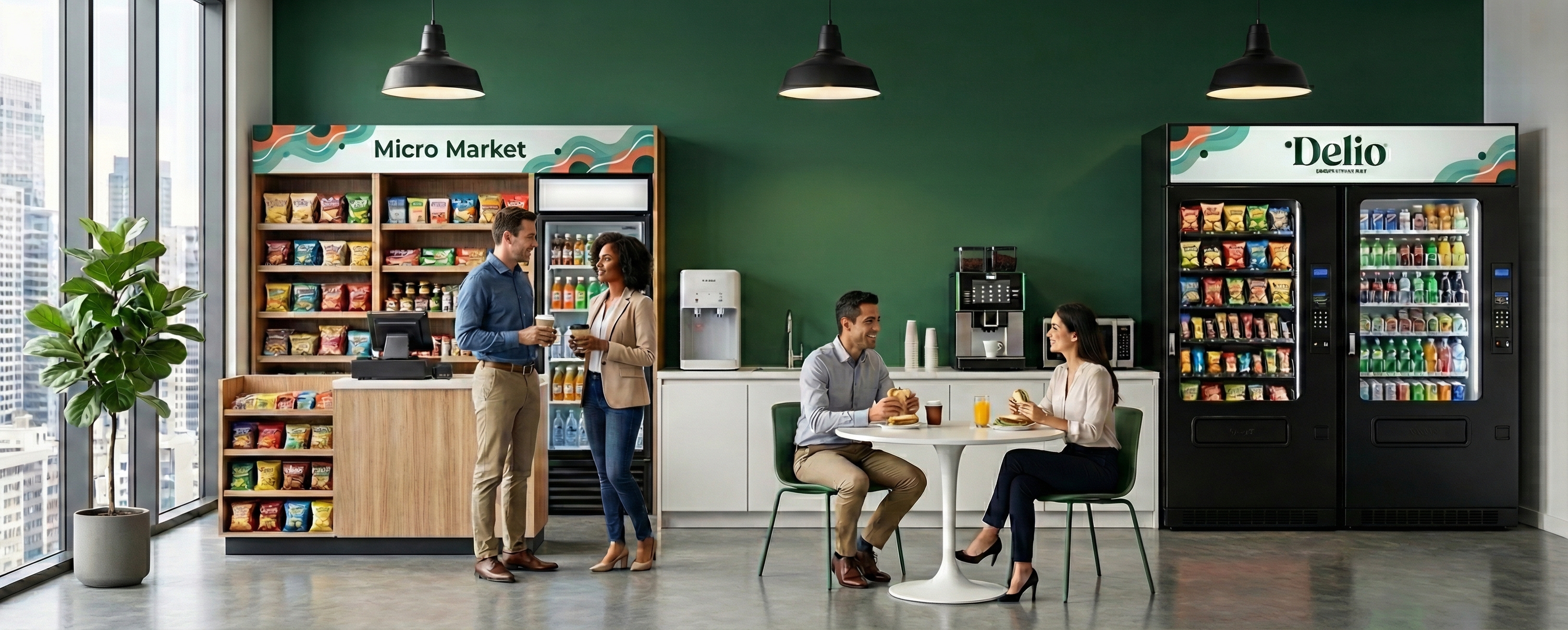 From micro markets and vending to coffee, pantry, smart coolers, and fresh food, Delio designs, installs, and manages the full program with one local DFW team.